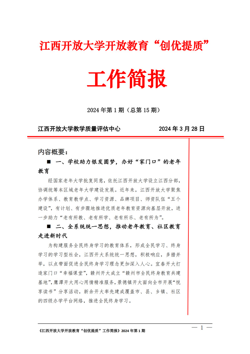 beat365在线唯一官网开放教育“创优提质”工作简报2024年第1期(总第15期)