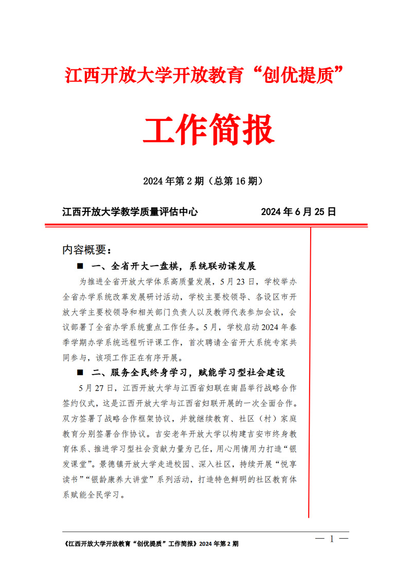 beat365在线唯一官网开放教育“创优提质”工作简报2024年第2期(总第16期)