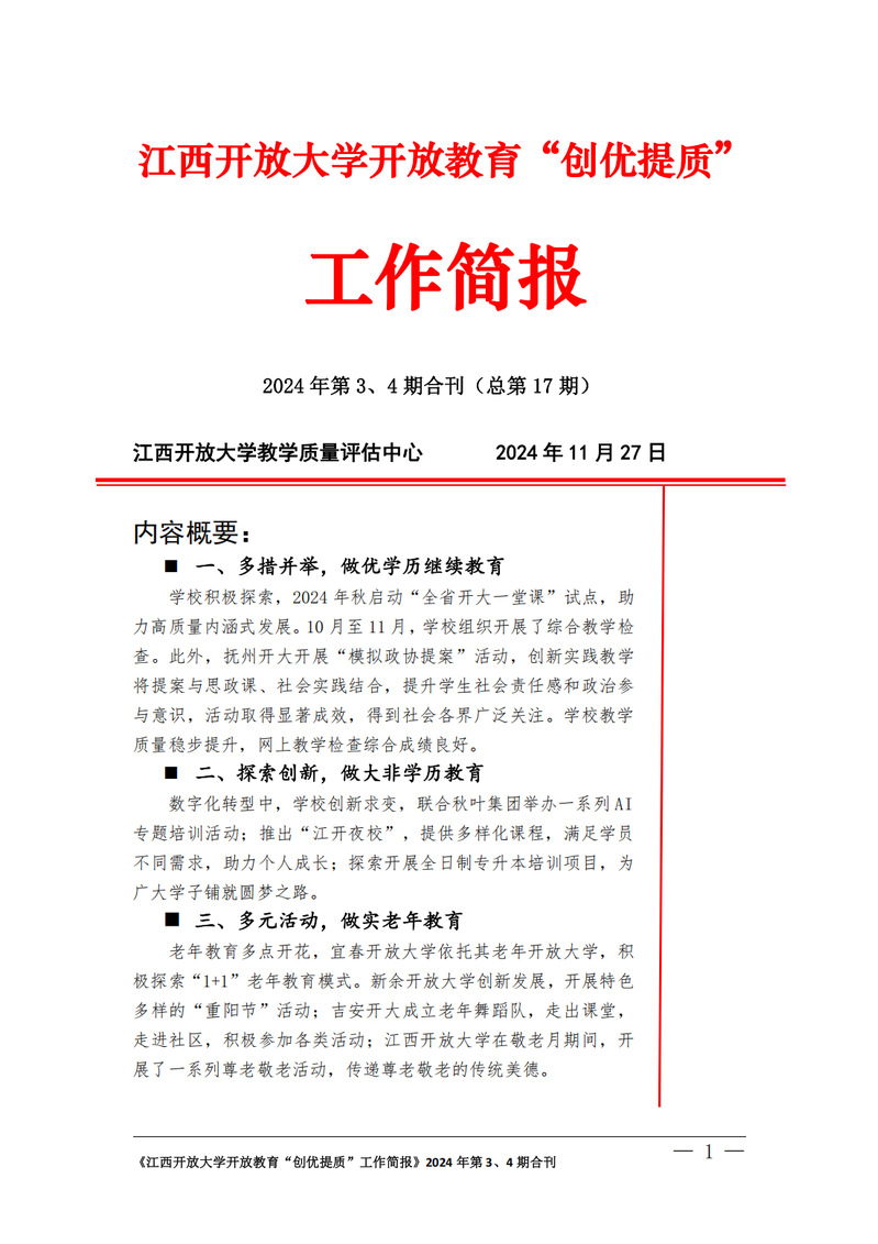 beat365在线唯一官网开放教育“创优提质”工作简报2024年第3、4期合刊(总第17期)