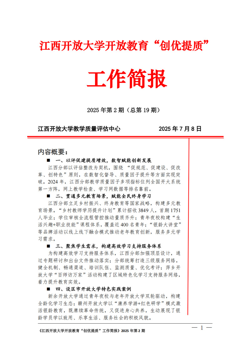 beat365在线唯一官网开放教育“创优提质”工作简报2025年第2期(总第19期)