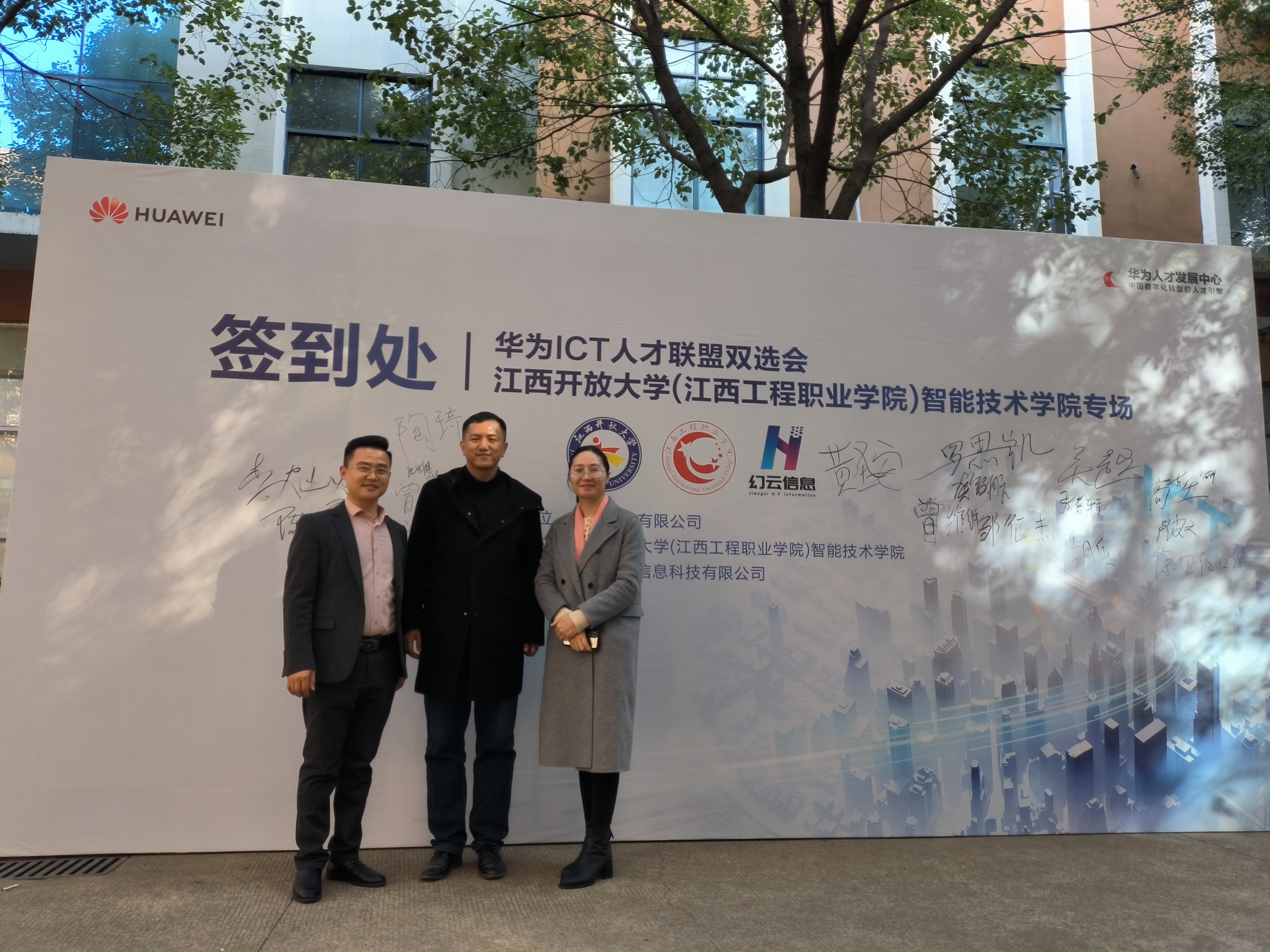进一步推动教育部、省教育厅、人社厅2024届毕业生就业工作,为共同构建可持续发展的ICT人才生态体系,12月28日,由华为技术有限公司主办,智能技术学院、江西幻云信息科技有限公司协办的2023年华为ICT人才联盟双选会智能技术学院专场在校外实践教学基地泰豪590创意园顺利举办。智能技术学院党委书记张世麒,教务科科长徐卫红、江西幻云信息科技有限公司校企合作负责人陈康、49家企业代表以及来自学院计算机网络技术专业120余名24届毕业生共同参加此次双选会。