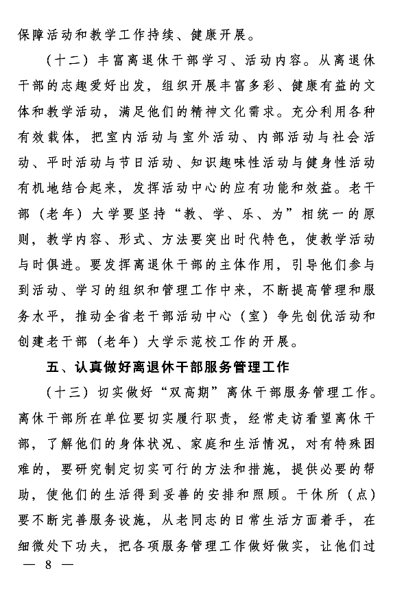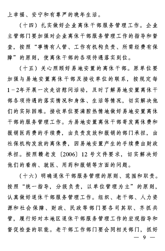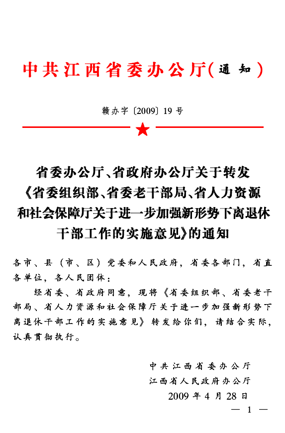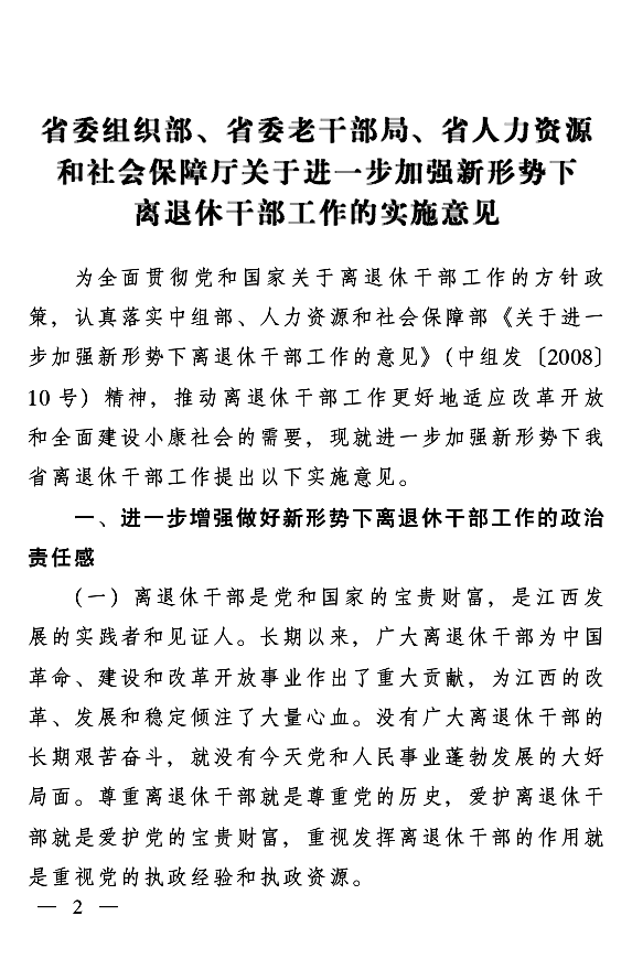 江西进一步加强离退休干部工作的实施意见