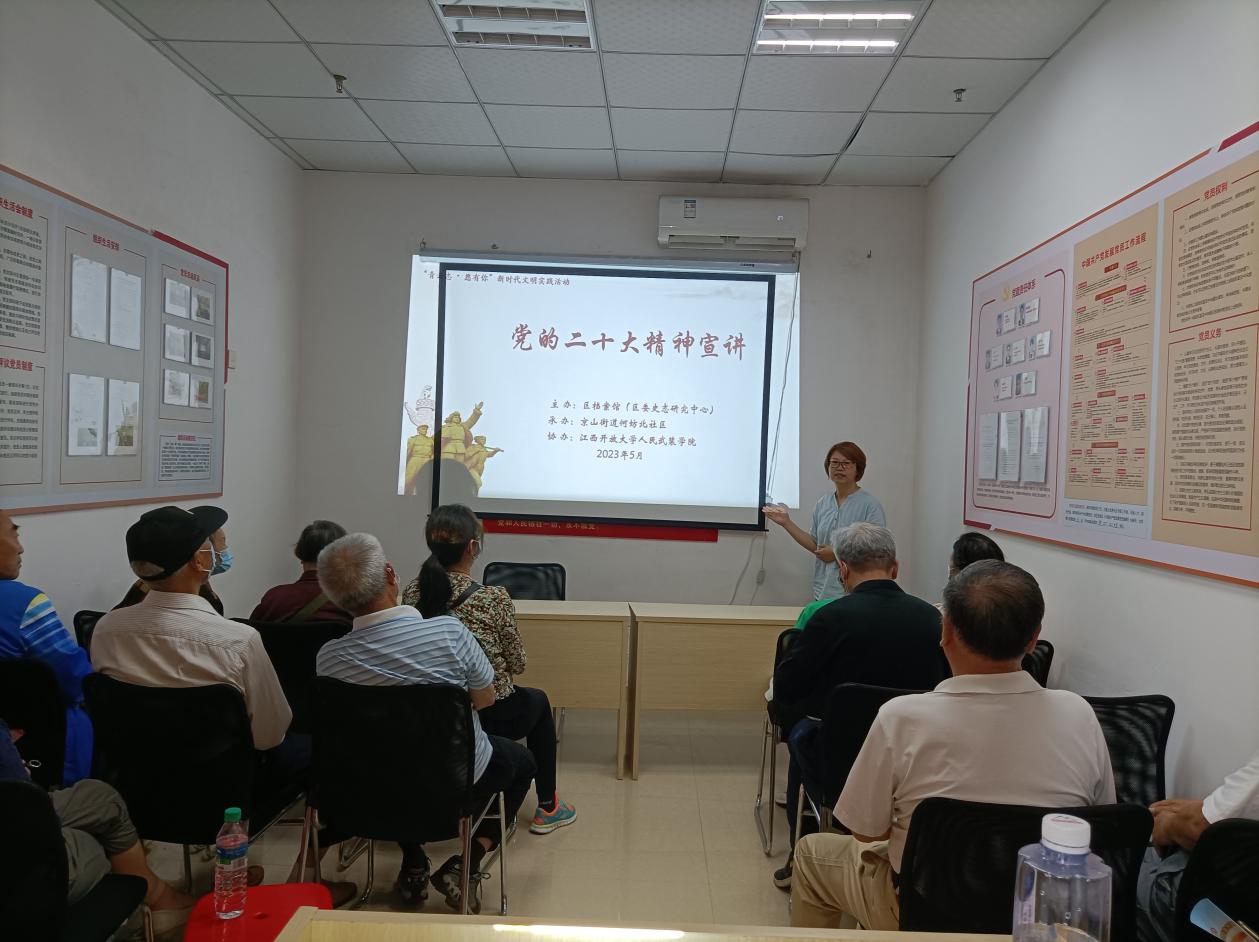 党总支委员、副院长林小红主动服务基层,到青云谱区何坊北社区宣讲党的二十大精神,与社区党员群众面对面深入交流,及时传递党的声音,切实让党的二十大精神走入寻常百姓中。