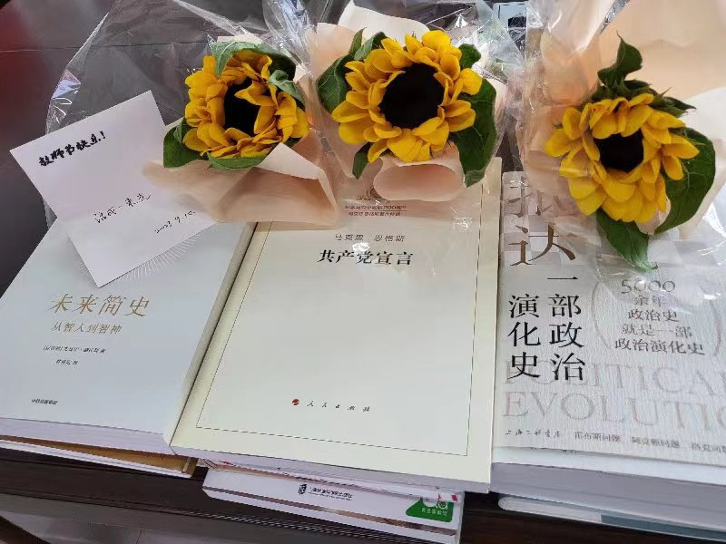 谈会伊始,学院为每位教职工送上一束向日葵,配以精致贺卡,上有学院教师、著名作家陈志宏亲笔书写的祝福语,向学院每位教职工致以最诚挚的节日祝福。教师是天底下最光辉的职业。一朵朵美丽的向日葵,寓意“忠诚、信念、自强不息、阳光开朗和积极向上”,代表学院教师忠于党的教育事业,坚持立德树人,全心全意为学生服务,用爱心浇灌成长,用知识托举希望,用信念筑牢思想。为深入推进“书香马院”建设,学院还购置一批马克思主义经典书籍及人文社科经典著作,在这个特殊时刻赠送给教师阅读。