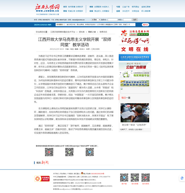 江西文明网:我院开展“双师同堂”教学活动