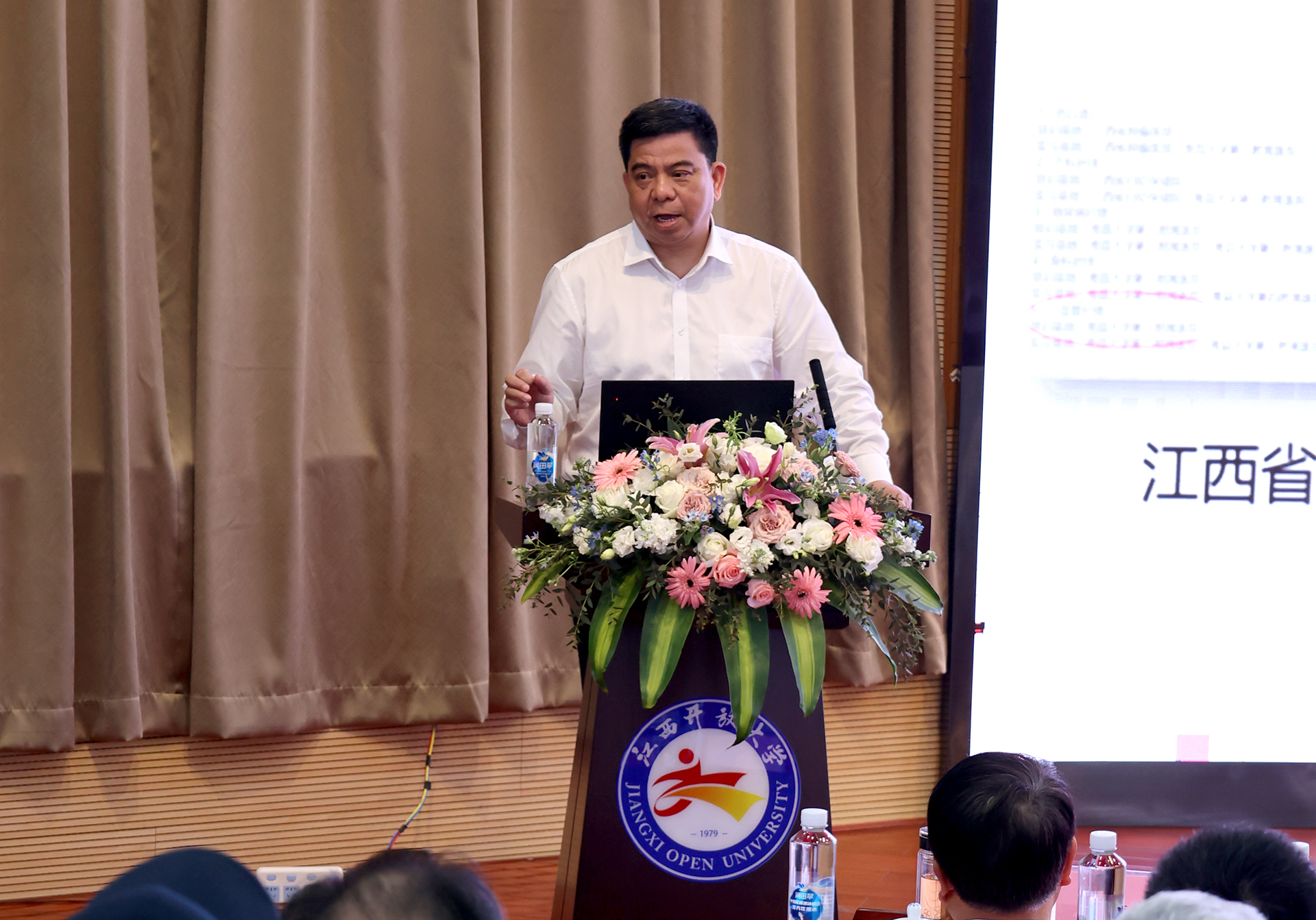 本次讲座在beat365在线唯一官网设立了1个专家主会场,beat365在线唯一官网3个校区(教学点)分会场、11个设区市开放大学分会场,并在12个南昌市基层社区(康养中心)组织集中收看实时直播。讲座由学校党委书记贺瑞虎主持。江西省科协二级巡视员黄丽芬,江西省妇联二级巡视员谢小云,江西省医疗健康投资有限公司党委书记董娟,党委副书记、总经理段晨辉,江西省长天康养实业投资集团有限公司副总经理陈萌,江西老年大学教学指导中心副主任刘剑等领导出席,近2500人通过主会场与分会场参加了活动,线上直播观看量达1.5万人次。