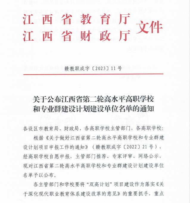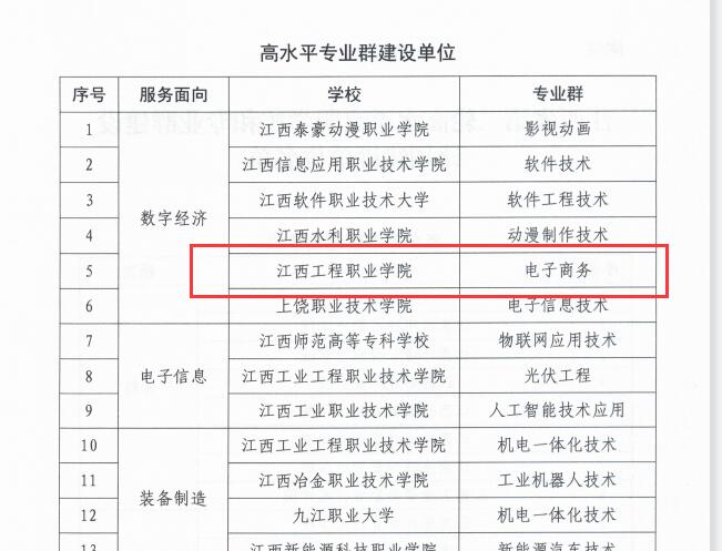 近日,江西省教育厅发布《关于公布江西省第二轮高水平高职学校和专业群建设计划建设单位名单的通知》,数字经济学院(电子商务专业群)入选江西省第二批高水平专业群计划建设单位。