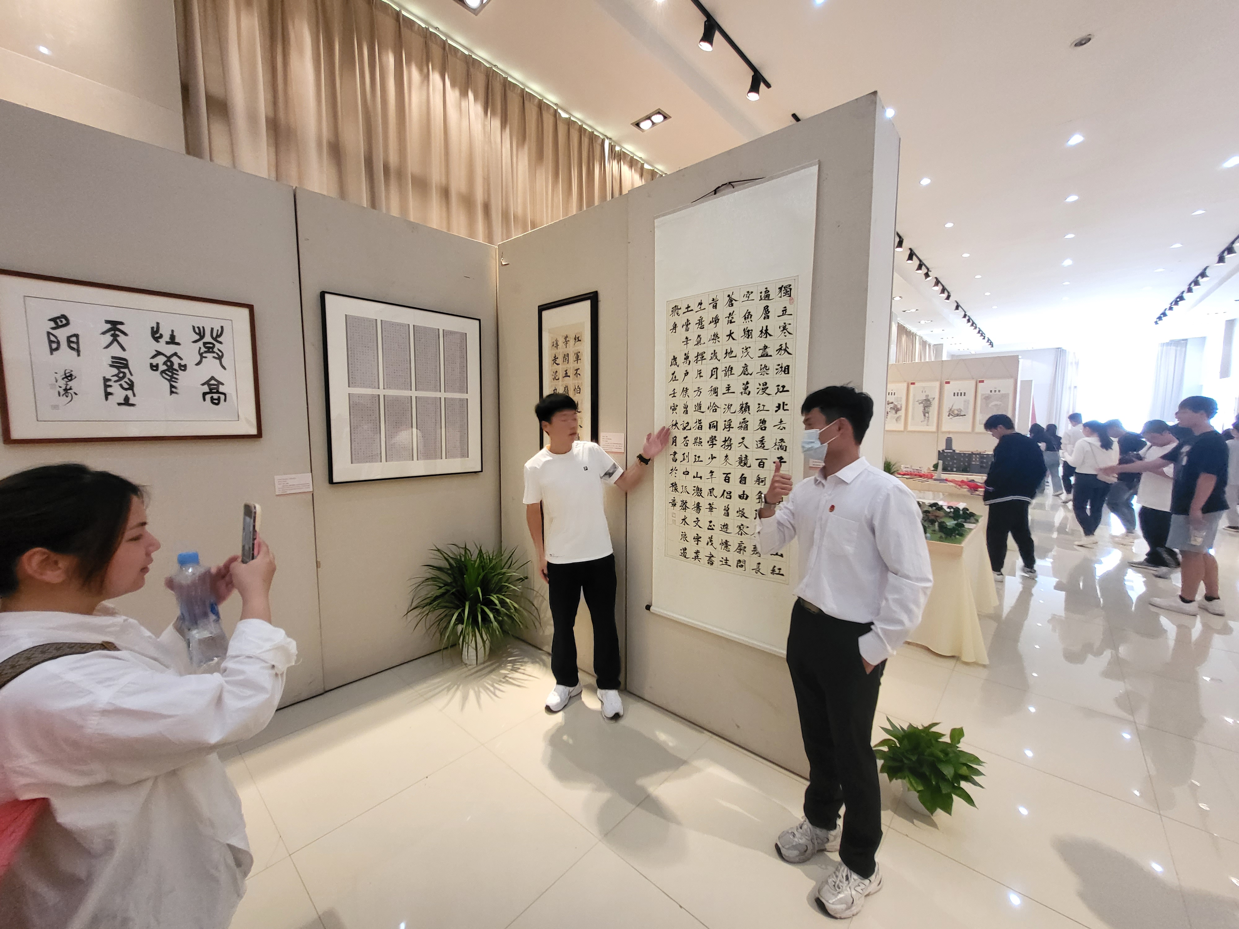 展厅中展列着来自全省不同高校的68个团队创作的优秀获奖作品,艺术表现形式丰富,主要有文创作品、书法、书籍、模型、动漫、绘画、剪纸、影像等。这些优秀作品展集中展示了全省高校红色文化育人成果,学员们一边认真观摩,一边聆听讲解,从一件件作品里重游红色故地,聆听革命事迹,致敬英雄先烈。他们感受到了那段艰苦卓绝的历史和红色文化的强大力量,更体会到了革命先烈用鲜血和生命换来的今天。红色文化在江西青年大学生的智慧和创意中以新颖的方式激发了青年的爱国之情、强国之志,激励着师生传承先辈精神,在新时代新征程中不忘来时路,走好脚下路,坚定未来路。