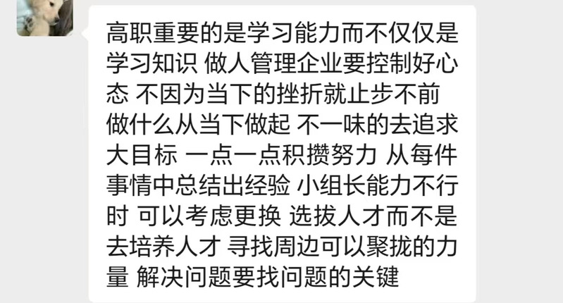 A:“情绪管理是重要的领导力,企业做得久心态和学习能力一样重要。作为领导需要培养下属,管理就是支持服务,帮助他提升目标为导向的能力,管理好情绪。”