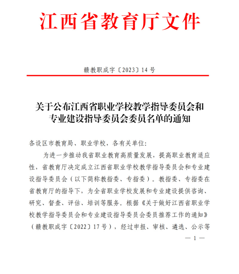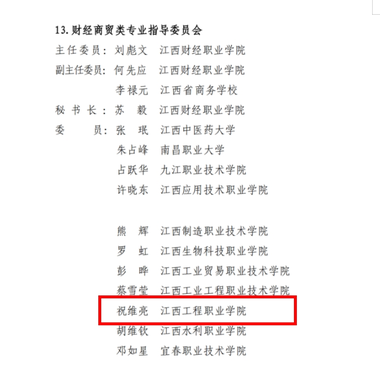近日,根据江西省教育厅《关于公布江西省职业学校教学指导委员会和专业建设指导委员会委员名单的通知》(赣教职成字〔2023〕14号)文件精神,我院祝维亮教授入选财经商贸类专业指导委员会。