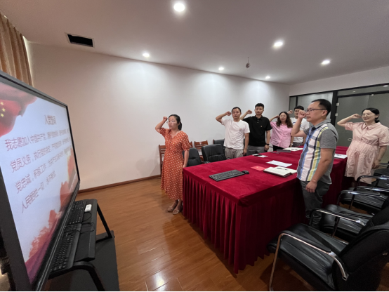 党支部书记张倩同志带领全体党员重温入党誓词,全体党员高举右拳,庄严宣誓,在铮铮宣誓中进一步坚定了理想信念。过政治生日的党员樊攀同志介绍自己的入党历程,表明要牢记入党初心,坚定理想信念。