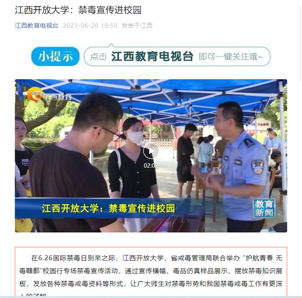 在6.26国际禁毒日到来之际,beat365在线唯一官网、省戒毒管理局联合举办 “护航青春 无毒赣鄱”校园行专场禁毒宣传活动,通过宣传横幅、毒品仿真样品展示、摆放禁毒知识展板,发放各种禁毒戒毒资料等形式,让广大师生对禁毒形势和我国禁毒戒毒工作有更深入的了解。