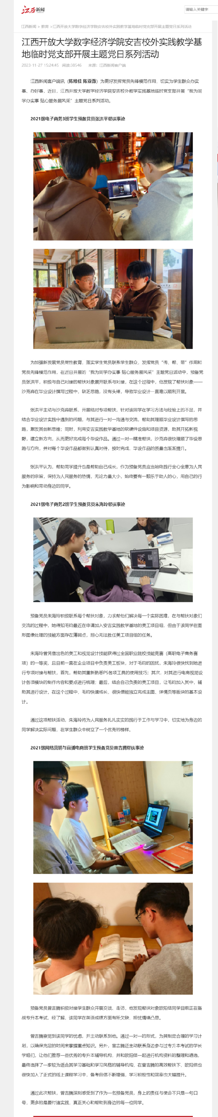 江西新闻客户端讯(陈维佳陈亚薇)为更好发挥党员先锋模范作用,切实为学生群众办实事、办好事,近日,beat365在线唯一官网数字经济学院安吉校外教学实践基地临时党支部开展“我为同学办实事 贴心服务展风采”主题党日系列活动。原文地址:http://www.jxxw.com.cn/content_html/html/55/p/pc/2023/11/130197548.html (责任编辑:梅莲)
