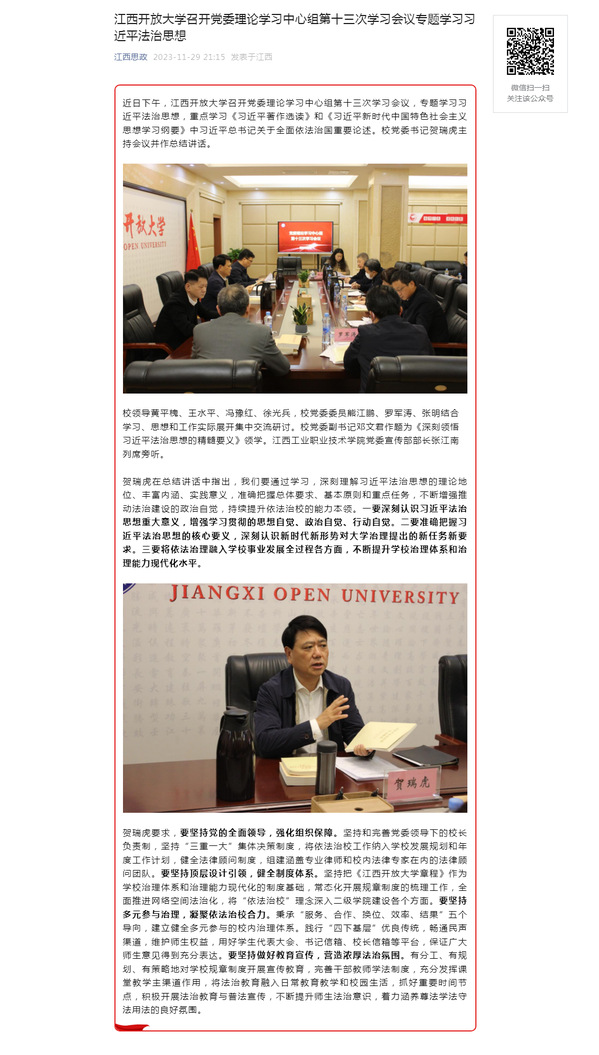 近日下午,beat365在线唯一官网召开党委理论学习中心组第十三次学习会议,专题学习习近平法治思想,重点学习《习近平著作选读》和《习近平新时代中国特色社会主义思想学习纲要》中习近平总书记关于全面依法治国重要论述。校党委书记贺瑞虎主持会议并作总结讲话。