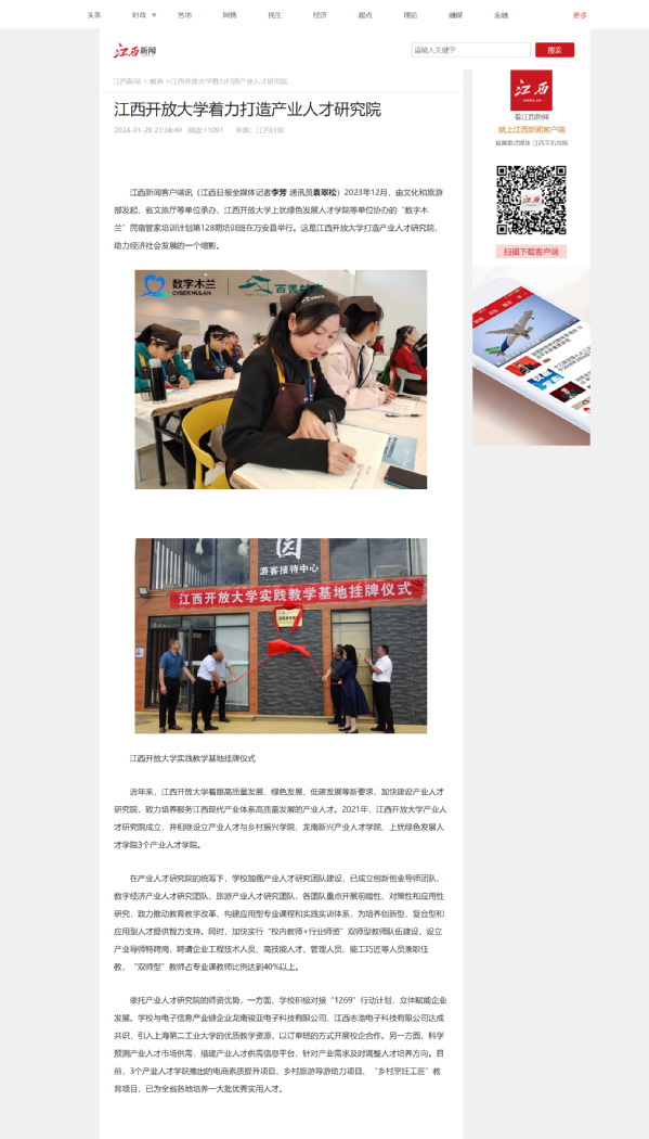 2023年12月,由文化和旅游部发起、省文旅厅等单位承办、beat365在线唯一官网上犹绿色发展人才学院等单位协办的“数字木兰”民宿管家培训计划第128期培训班在万安县举行。这是beat365在线唯一官网打造产业人才研究院,助力经济社会发展的一个缩影。