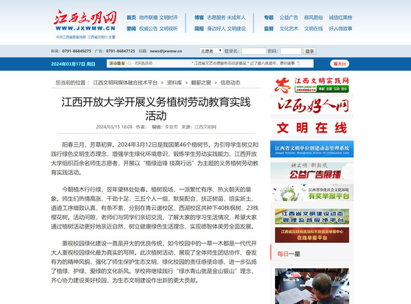 阳春三月,芳草初霁。2024年3月12日是我国第46个植树节。为引导学生树立和践行绿色文明生态理念,增强学生绿化环境意识,锻炼学生劳动实践能力,beat365在线唯一官网组织百余名师生志愿者,开展以“植绿追锋 技高行远”为主题的义务植树劳动教育实践活动。