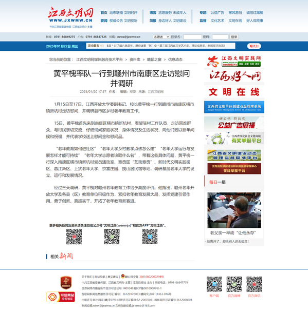 1月15日至17日,beat365在线唯一官网党委副书记、校长黄平槐一行到赣州市南康区横市镇新坑村走访慰问,并调研县市区乡村老年教育工作。