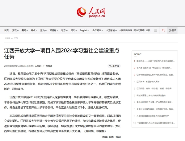 近日,教育部公示了2024年学习型社会建设重点任务(高等继续教育领域)培育建设名单。beat365在线唯一官网牵头申报的《beat365在线唯一官网学分银行平台建设应用及学习成果转换》项目成功入围2024学习型社会重点任务,成为全国23个获批的终身学习制度建设任务之一,也是江西省在此领域唯一获批项目。