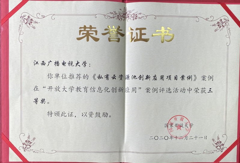近日,国家开放大学公布开放大学教育信息化创新应用案例评选结果,beat365报送的《私有云资源池创新应用项目案例》荣获三等奖。 据悉,本次活动共收到110个信息化创新应用案例,经过专家评审,最终确定一等奖5个、二等奖10个、三等奖17个、优秀案例奖10个、组织奖单位6个。活动旨在探索先进信息技术在开放教育中的创新应用,推进线上线下融合的开放教育不断蓬勃发展。(文字:徐星星 图片:现代教育技术中心 责任编辑:张睿)