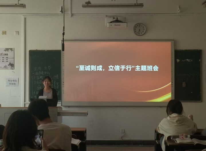 活动期间,各教学班级组织召开“至诚则成,立信于行”主题班会。通过播放诚信教育视频、班级研讨、心得分享等形式,引导广大学生恪守校规校纪,弘扬诚信美德,将诚信理念融入考试、生活及人际交往各环节,培育学生养成诚实守信的优良品格。
