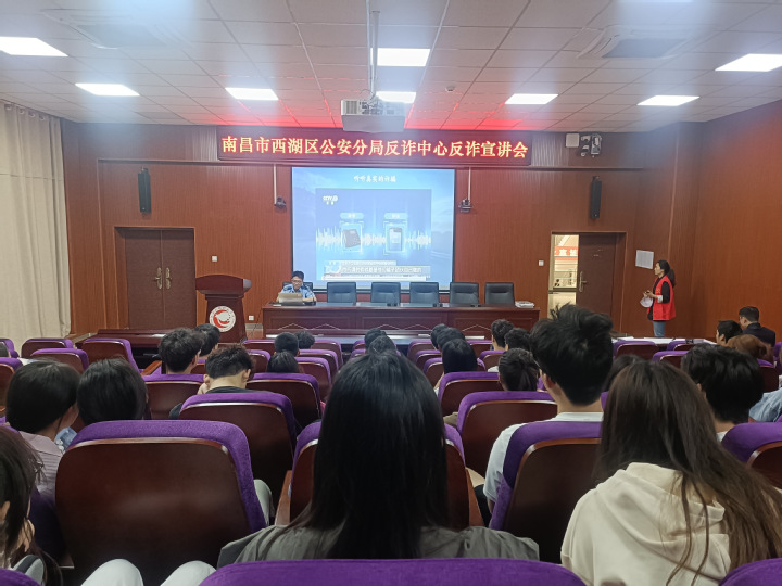 此外学校还邀请了西湖公安分局反诈中心警官进校园宣讲,警官围绕金融诈骗、电信诈骗及不良校园贷等典型案例,帮助同学们了解到诈骗的主要手段、形式及其危害,极大增强了同学们的警惕意识,切实提升了同学们的安全防范意识。