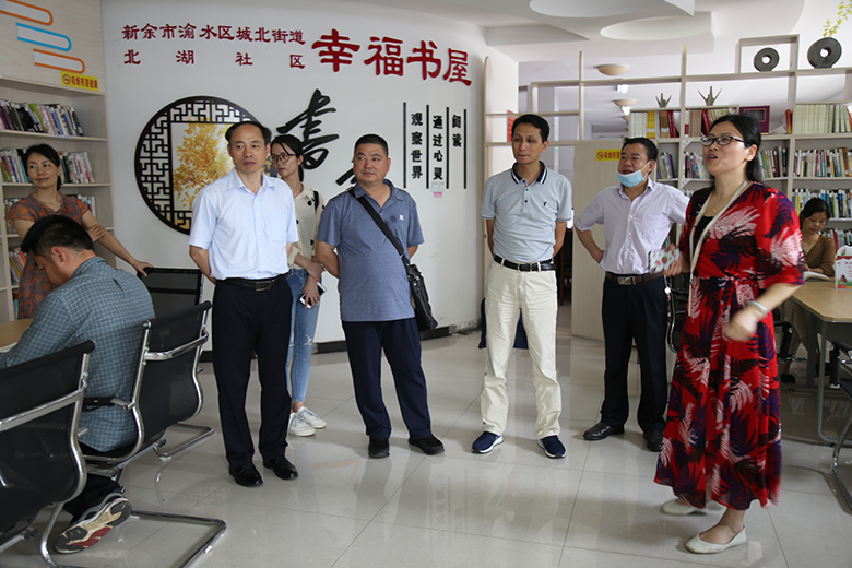 座谈会结束后,余歙峰院长一行在彭基勇、梁云森及社区办相关人员的陪同下参观考察了2019年全省“全民终身学习活动周”总开幕式主会场新余市民学习中心。下午,冒雨先后考察调研了北湖社区幸福书屋、夏布绣博物馆、渝水区下保村实践教学点。