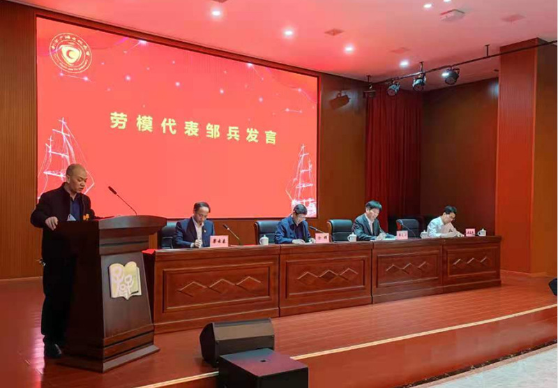 开学典礼在奏唱国歌中拉开帷幕。劳动模范学历提升班学员邹兵代表新生发言。邹兵胸前佩戴劳动模范奖章,感谢组织对劳动模范的关心关爱,并就学习表态,表示会正确处理工作与学习的关系,做到学习工作两不误;认真学习各门课程,完成学业;将理论联系实际,立足岗位做出更大的贡献。