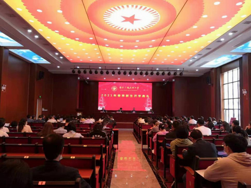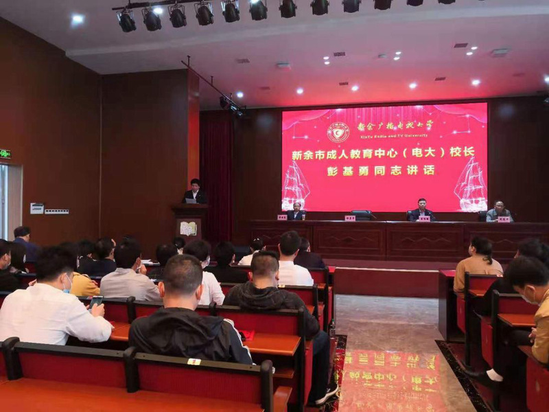 2021年4月23日上午,新余电大在新余市民学习中心报告厅隆重举行2021年春季新生开学典礼暨颁奖仪式。中心(电大)党委副书记、主任(校长)彭基勇、党委副书记黄绍强、副调研员周清华出席了开学典礼,参加典礼仪式的还有各工作站教学点负责人、新余电大全体教职工、新余电大2020年秋季学期网上学习优秀学员以及2021年春季开放教育新生代表共计150余人。会议由党委委员、副主任(副校长)梁云森同志主持。典礼在庄严的国歌声中拉开了序幕。