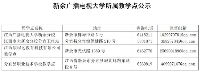 新余广播电视大学所属教学点公示