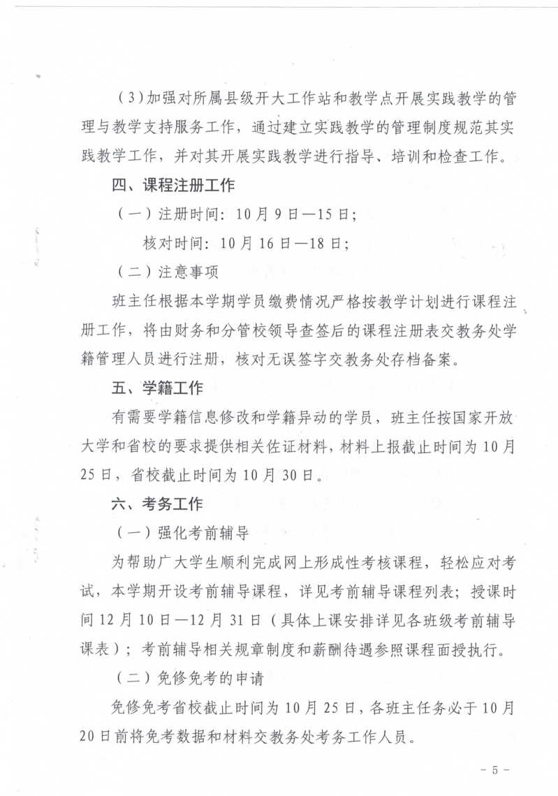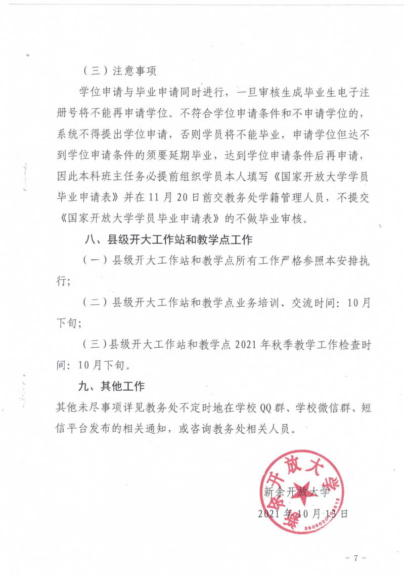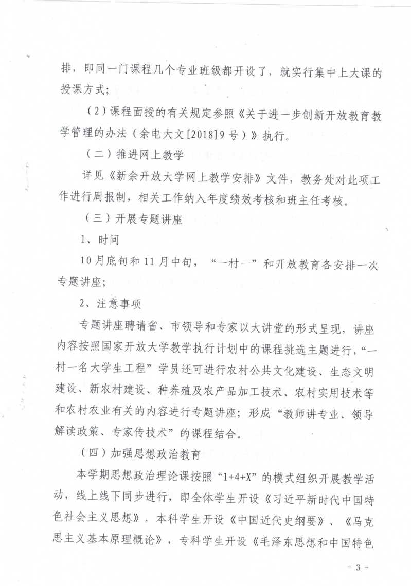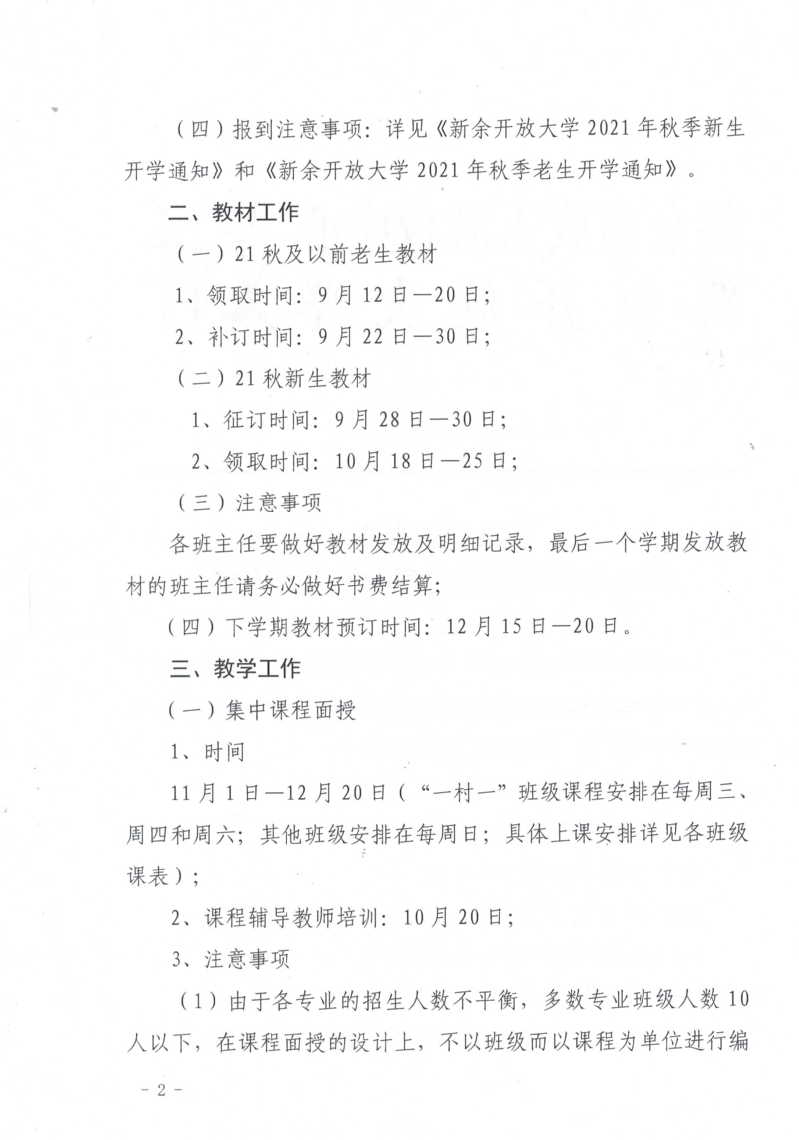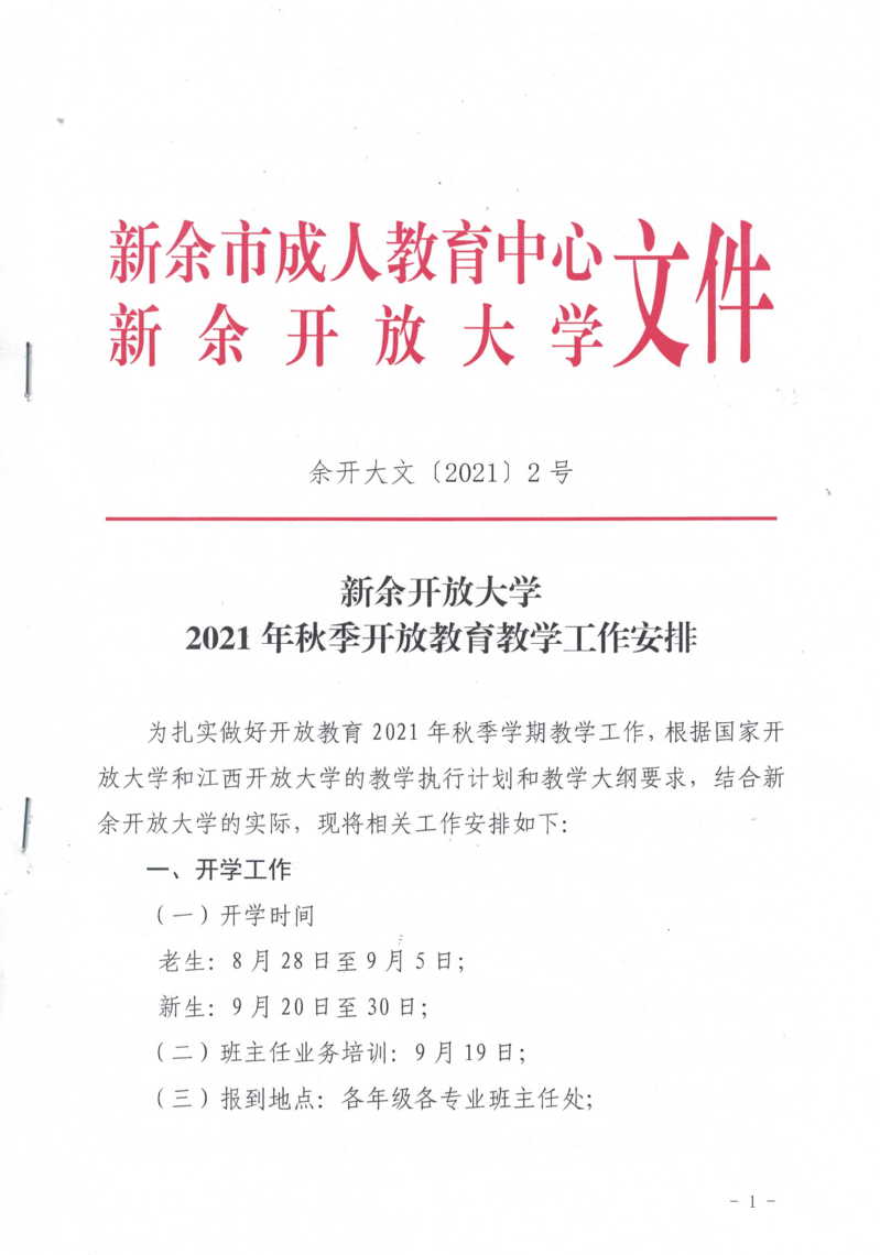 新余开放大学2021年秋季开放教育教学工作安排