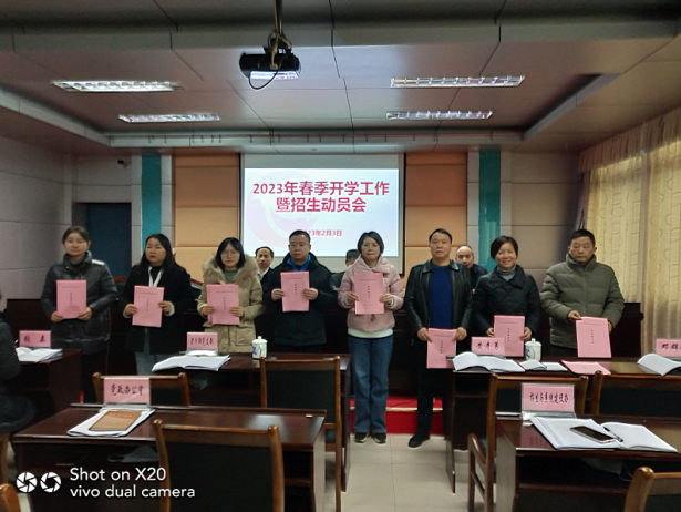 党委副书记、主任(校长)钟梅春作招生工作动员讲话。他指出2023年招生工作要务实举措,确保任务落实。要以签订招生目标责任状为契机,主动作为,扎实推进校企合作、校政合作、校校合作;切实优化招生服务,充分运用互联网提高报名效率;进一步拓展招生宣传渠道,做到以生招生、全员招生、全年招生,形成拉网式招生网络,确保招生工作规范有序,全力打好春季招生攻坚仗。