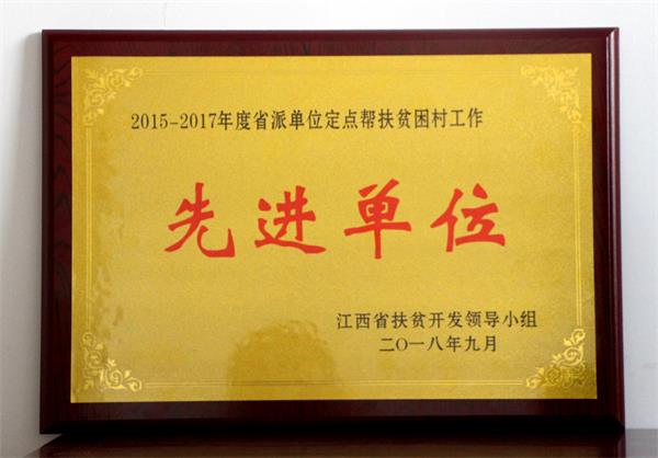 近日,江西省扶贫开发领导小组下发了《2015—2017年度省派单位定点帮扶考核情况的通报》》(赣开发[2018]9号),文件中公布了257个省派单位定点帮扶考核情况,其中beat365获得“2015—2017年度省派单位定点帮扶贫困村工作先进单位”荣誉称号。这是继beat365荣获“2012-2014年度定点帮扶贫困村先进单位”后再获此荣誉。